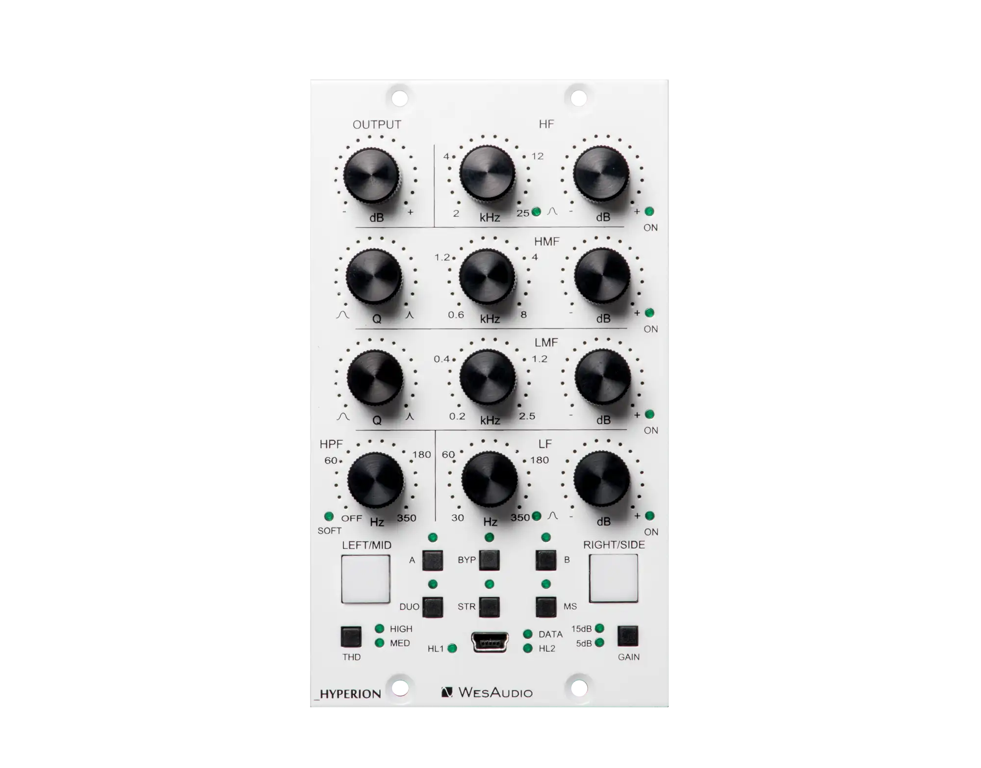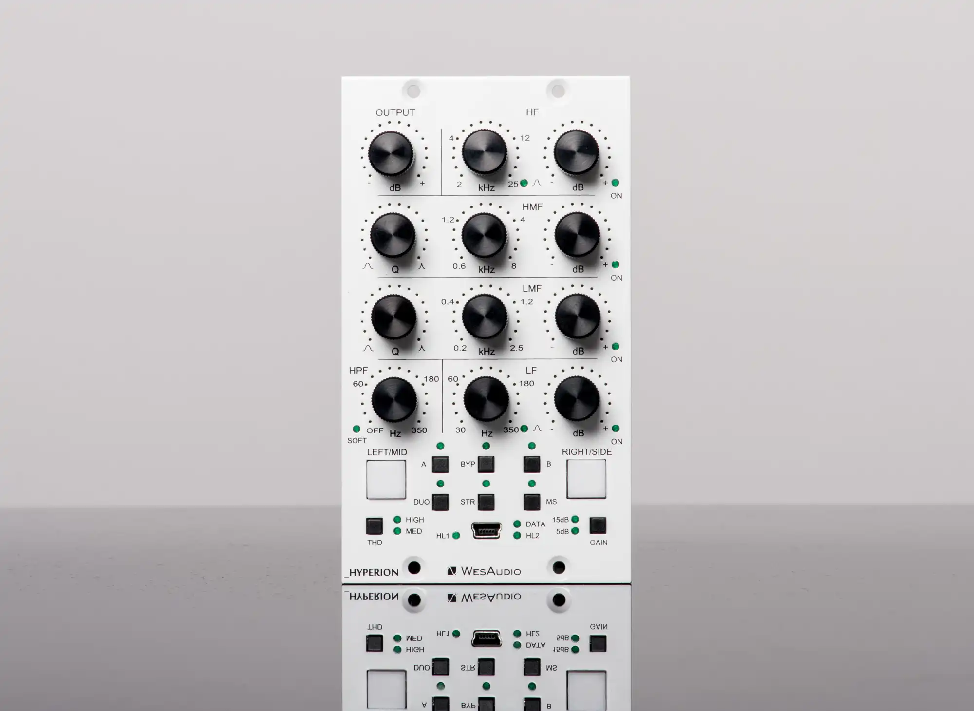 HYPERION ist ein voll analoger parametrischer EQ mit +24dBu Headroom. Er zeichnet sich durch eine Reihe innovativer Verbesserungen aus, die kein anderer Prozessor auf dem Markt bietet. Sein innovatives Design nutzt 15 VCAs pro Kanal, um im Wesentlichen geräuschlose Parameteränderungen und eine sehr musikalische Natur zu bieten. Der _HYPERION ist das nächste Produkt der NG500-Reihe, bei dem der Total Recall über die USB-Buchse an der Vorderseite oder das _TITAN-Gehäuse realisiert wird.