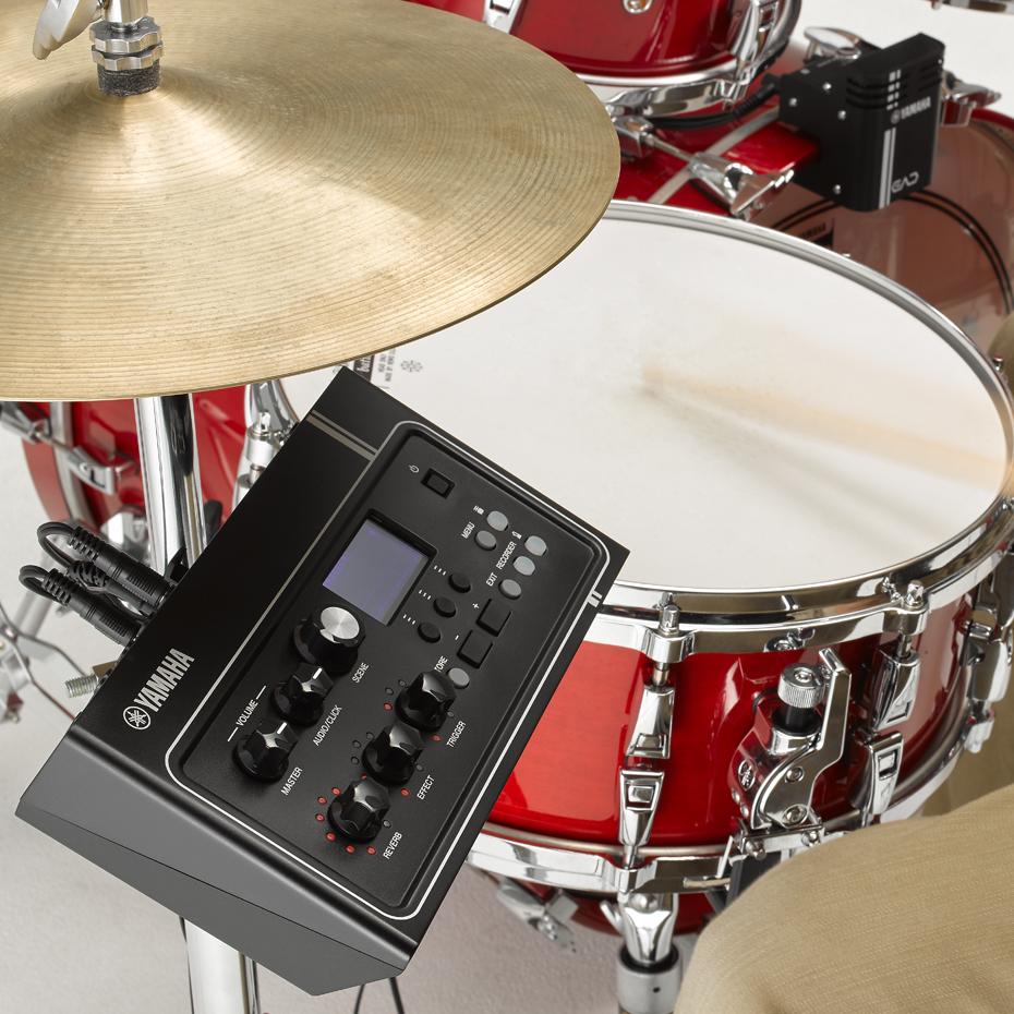 Das EAD Modul bietet auch die Option, den akustischen Schlagzeug-Klang mit über 750 bereits integrierten Samples oder bis zu 100 eigenen Sounds zu erweitern und zu layern. Dafür bietet das Modul Eingänge für bis zu sechs Trigger wie Yamaha DT50, die alternativ auch mit zusätzlichen Pads statt mit an den Trommeln angebrachten Sensoren genutzt werden können. Ein Trigger für die Bassdrum ist im EAD Sensor bereits integriert. Beim Anschluss des EAD10 an einen Computer mit entsprechender Software lässt sich der eingerichtete Sound direkt aufzeichnen. So entstehen schnell und problemlos großartige Schlagzeug-Aufnahmen, ohne dass zusätzliche Mikrofone oder weiteres Studio-Equipment benötigt würden.