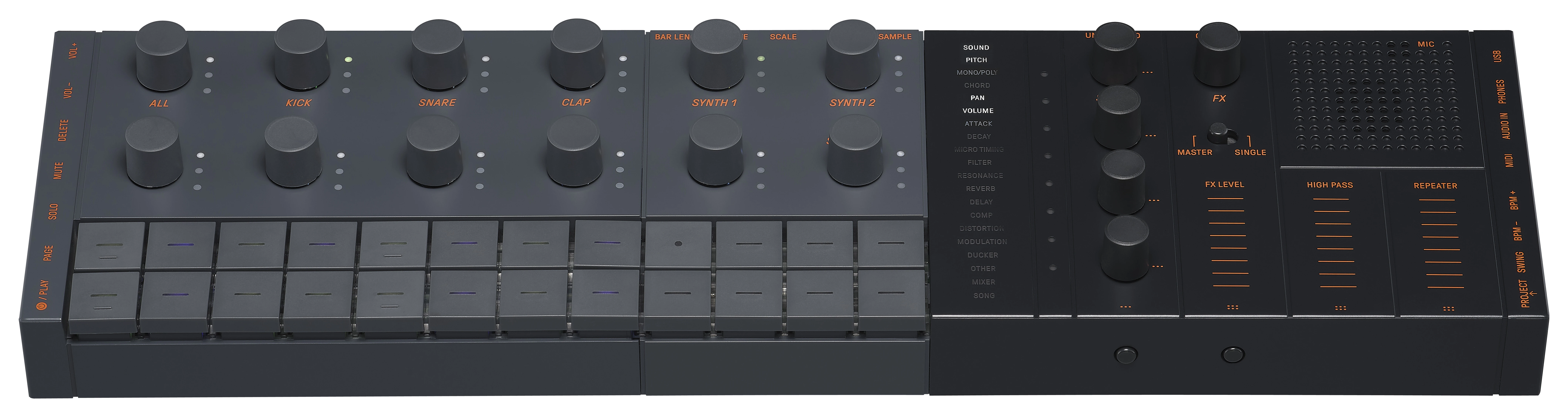 dynamischen und intuitiven Steuerungsmöglichkeiten. Für jeden Track gibt es sechs Pattern