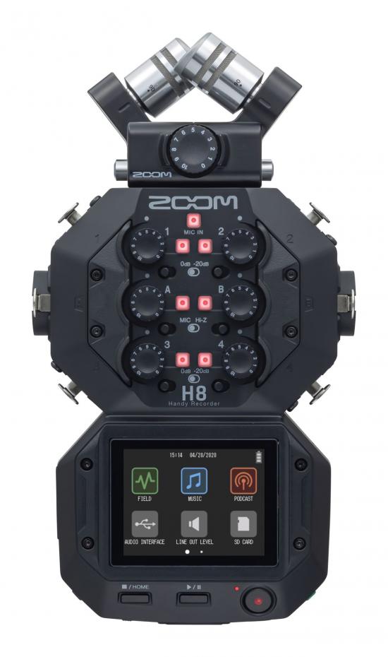 Die passende App für Ihren WorkflowEgal ob Sie Außenaufnahmen erstellen, Musik aufnehmen und mischen oder einen Podcast produzieren – der Farb-Touchscreen des H8 stellt mit seinen drei anwendungsspezifischen App-basierten Bedienoberflächen die passenden Funktionen für Ihr Projekt bereit. Und das durch ein simples Berühren mit Ihrem Finger. Die Podcast-AppMit der PODCAST-App lassen sich ganz einfach hochwertige Produktionen erstellen. Dank der speziellen Sound-Pads können Sie über den Touch-Screen Soundeffekte auslösen, Hintergrundmusik starten u. v. a. m. Wählen Sie aus 13 hochwertigen Sounds oder nutzen Sie eigene Inhalte von der SD-Karte. (Die Podcast-App unterstützt bis zu vier Mikrofone sowie zwei Sound-Pad-Kanäle.)Die Musik-AppMit der MUSIK-App haben Sie direkten Zugriff auf alle wichtigen Funktionen wie Audiopegel, Fader, Pegelanzeigen und mehr. Mit 10 Eingängen und 12 Aufnahmespuren lassen sich auch größere Ensembles problemlos aufnehmen. Legen Sie Mischungen und Overdubs an und bearbeiten Sie Ihre Aufnahmen mit EQ und Kompressor. Verbinden Sie Ihren Recorder über USB mit unserer Zoom Guitar Lab Software und greifen Sie auf eine riesige Auswahl von Amps und Effekten zu.Die Field-AppDie FIELD-App ist die perfekte Lösung für Außenaufnahmen, Sound-Design, Konferenzen und vieles mehr. Sie bietet direkten Zugriff auf großformatige Pegelanzeigen für jede Spur, sodass Sie sicherstellen können, dass Ihre Aufnahmen nicht übersteuern. Zudem können Sie hier schnell auf den Eingangstyp, Hochpassfilter, Kompressor, Limiter, das Noise Gate und andere wichtige Einstellungen zugreifen. Die MikrofonkapselDer H8 wird mit dem XYH-6 Mikrofon ausgeliefert. Diese Kapsel beinhaltet zwei aufeinander abgestimmte unidirektionale Mikrofone zur Abnahme direkt vor dem Recorder platzierter Quellen. Die Mikrofonkapseln lassen sich einfach austauschen, sodass Sie immer das passende Mikrofon für Ihre Anwendung nutzen können. Kapselsystem der nächsten GenerationDas Zoom Capsule System 2.0 erlaubt den Anschluss von bis zu vier zusätzlichen Audiokanälen über den H8 Kapselanschluss, um Ihre Aufnahmeoptionen zu erweitern. Kombiniertes XY / AB MikrofonXAH-8Die XAH-8 Kapsel ermöglicht kristallklare Stereoaufnahmen. Die Kapseln lassen sich leicht ausrichten, um zwischen einer kompakten XY-Anordnung und einer AB-Ausrichtung mit erweiterter Stereobreite zu wechseln. Ambisonic MikrofonVRH-8VRH-8 ist eine Ambisonic-Mikrofonkapsel, die vier Kondensatormikrofone für immersive 360° Audioaufnahmen enthält. Ein interner Beschleunigungssensor sorgt dafür, dass die Kapsel zu jeder Zeit korrekt ausgerichtet ist, während der integrierte Ambisonic-Dekoder automatisch die erforderlichen Konvertierungen durchführt und damit Zeit bei der Post-Produktion einspart. ErweiterungskapselEXH-8Die EXH-8 Kapsel bietet vier zusätzliche XLR-Eingänge für insgesamt 10 Anschlussmöglichkeiten. Jeder zusätzliche Eingang ist mit einem eigenen Gain-Regler sowie einem Pad-Schalter ausgestattet. Sie können sogar Ihre bevorzugten Kondensatormikrofone verwenden – verbinden Sie dazu einfach eine Stromversorgung mit der EXH-8 Kapsel, um Phantomspeisung zur Verfügung zu stellen.FernbedienungSie können die Pegelanzeigen überwachen und unabhängig vom H8-Anwendungsmodus REC, PLAY und STOP auslösen. Setzen Sie dazu einen BTA-1 in Ihren H8 ein und stellen Sie die Verbindung mit Ihrem iOS-Gerät her. (*BTA-1 optional erhältlich.)Ein- und AusgängeDer H8 bietet vier XLR-Eingänge mit dedizierten Pad-Schaltern und Gain-Reglern. Zwei zusätzliche XLR/TRS-Combo-Buchsen mit Hi-Z-Schaltern erlauben wahlweise die Aufnahme von Line-Signalen, Mikrofonen oder den Direktanschluss von E-Gitarren und -Bässen.Nutzen Sie den integrierten 3,5 mm Kopfhörerausgang zum Abhören oder speisen Sie das Audiosignal über den separaten Stereo-Line-Ausgang direkt in Ihre Kamera ein.Mehrkanal-Audio-InterfaceDer H8 ist ein leistungsfähiges USB-Audio-Interface. Verbinden Sie ihn über USB mit Ihrem PC, Mac, iPad oder Tablet und nutzen Sie bis zu zwölf Aufnahmekanäle gleichzeitig.Aufnahmedauer und DateiformateMit nur vier AA-Batterien erreichen Sie eine Aufnahmedauer von bis zu 20 Stunden. Für eine unbegrenzte Aufnahmedauer verwenden Sie das (optional erhältliche) AD-17 Netzteil.Der H8 erstellt BWF-kompatible WAV- und MP3-Dateien in folgenden Formaten: 44,1 kHz / 16 Bit 44,1 kHz / 24 Bit 48 kHz / 16 Bit 48 kHz / 24 Bit 96 kHz / 16 Bit 96 kHz / 24 BitKostenlose Software für die Aufnahme und EditierungDer H8 wird mit Lizenzen für einen kostenfreien Download der Steinberg Cubase LE Musikproduktionssoftware und der Editor-Software WaveLab Cast ausgeliefert.WaveLab Cast unterstützt Sie bei der Fertigstellung Ihres Projekts mit einer breiten Palette an umfassenden Bearbeitungs-, Misch- und Verfeinerungswerkzeugen.Podcasting WaveLab Cast verbindet Sie direkt mit Podcast-Verzeichnissen, wie z.B. Spreaker oder Podbean*. Sie können Episoden schnell hochladen und RSS-Feeds direkt erstellen und veröffentlichen. Audio für VideoImportieren Sie Ihre Videodatei und WaveLab Cast extrahiert automatisch den Ton. Sie können die Bearbeitungswerkzeuge verwenden, um unerwünschte Geräusche zu reduzieren, Pegel zu ändern und laute Zischlaute zu entfernen. Mit den Metering-Optionen können Sie neue Spuren erstellen, Ihre Musik einblenden, EQ und Kompression verwenden. Mit den Exportfunktionen von WaveLab Cast können Sie die Audiospur wieder an die Videodatei anhängen.Field RecordingWaveLab Cast unterstützt eine Audioqualität von bis zu 96KHz und enthält einen High-End Re-Sampler. RestoreRig entfernt Rauschen und unerwünschte Geräusche. Mit den Snap-Funktionen und Crossfade-Optionen können Sie neue Dateien zusammenstellen. Wenn Sie fertig sind, exportieren Sie Ihre Sounddateien in jedes gängige Audioformat