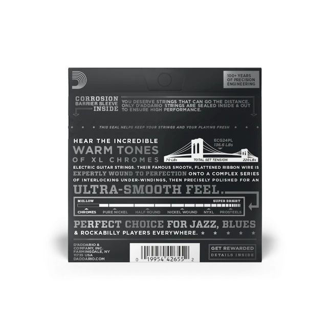 XL Chromes sind unsere Saiten für E-Gitarre mit dem wärmsten, weichesten Ton. Jazzgitarristen wie Blueslegenden, zum Beispiel Gary Clark Jr., lieben diese flach umsponnene Saiten mit dem glattesten Sp...