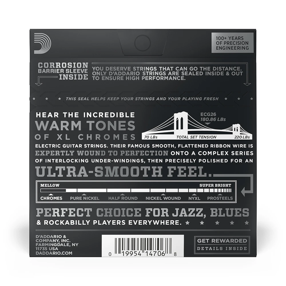 Detailauflistung D`Addario ECG26 13-56 Chromes Flatwound E-Gitarren Saitensatz