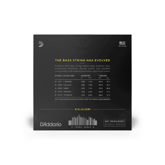 d'Addario NYXL45130MS 45-130 5-String Multi-Scale