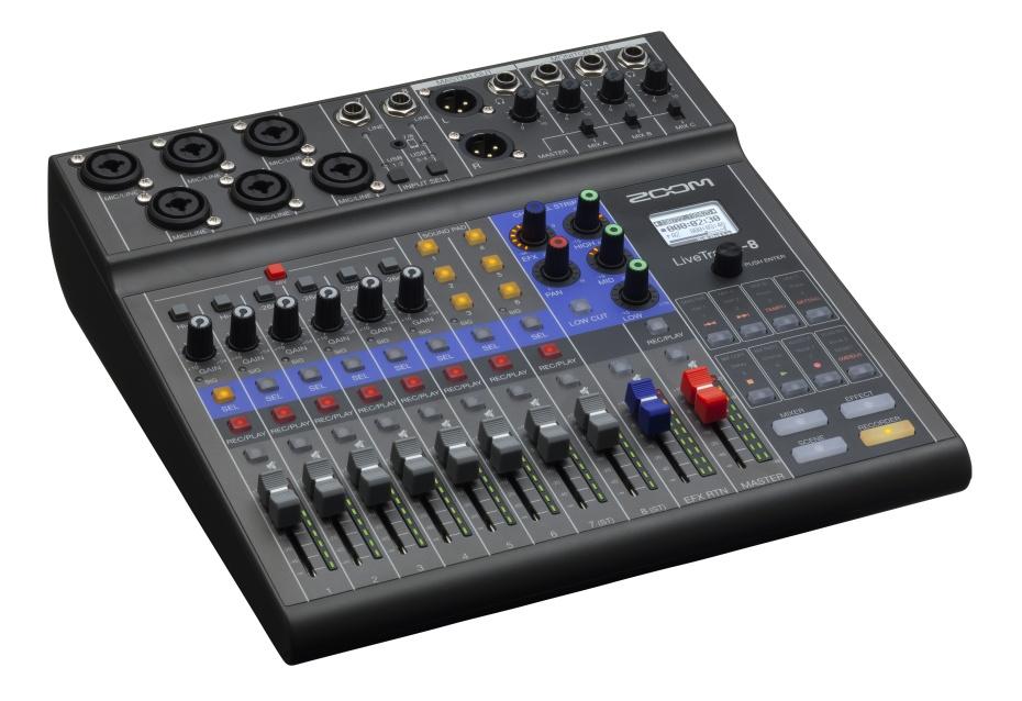 Über das helle, hintergrundbeleuchtete LCD und den Endlosregler haben Sie direkten Zugriff auf das intuitive Menü-System von LiveTrak: Hier können Sie neue Projekte erstellen, vorhandene Projekte laden oder Ihre Aufnahme-Einstellungen im Handumdrehen anpassen.